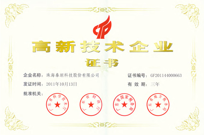高新技術企業(yè)證書